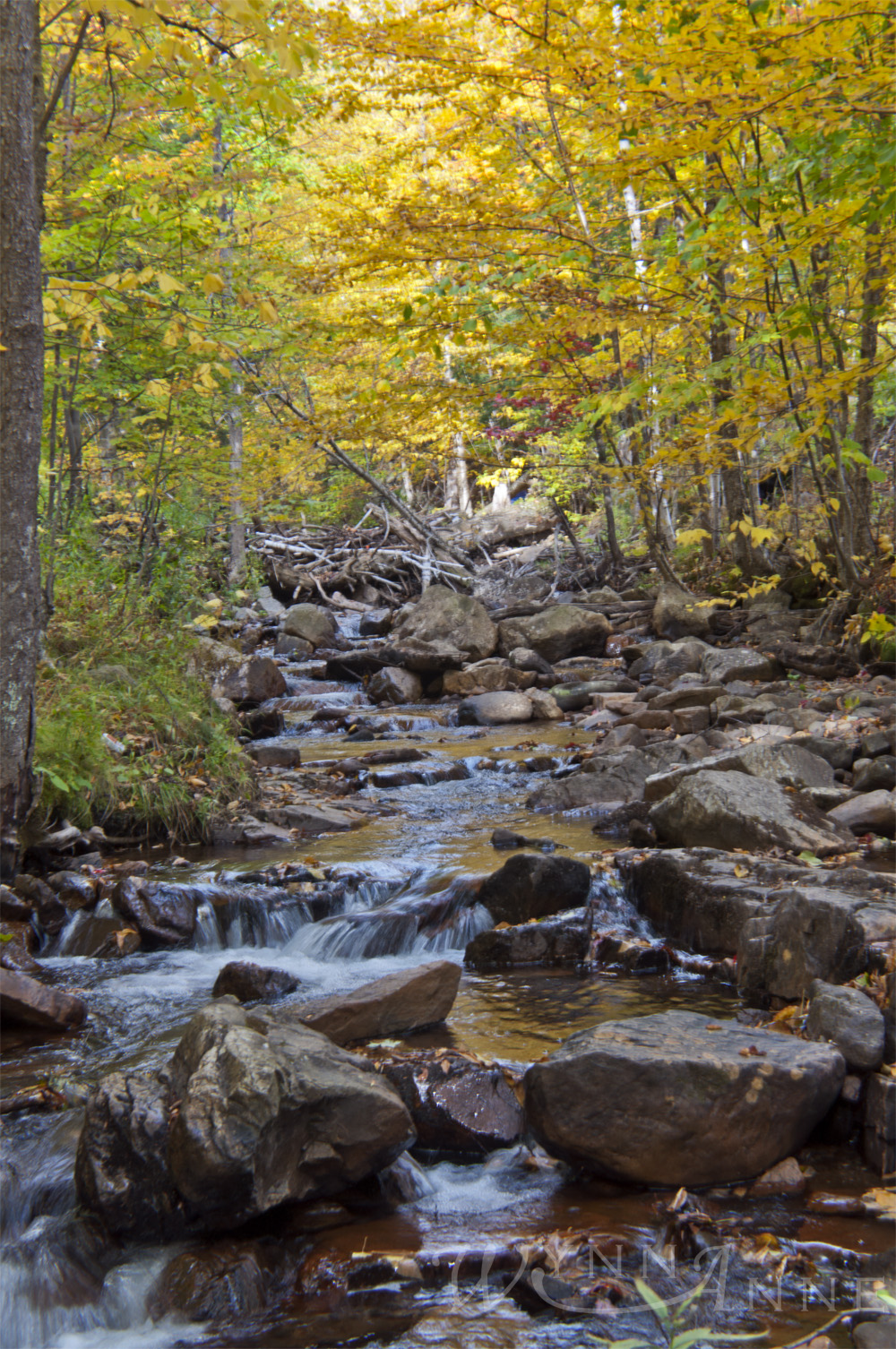 Then we headed up to the mountain, which is a very popular ski village about two hours from our home. In the off-season, the ski trails are open for hikers and other non-snow adventurers. A hiking trail ran alongside a small stream and occasionally joined the ski trails.